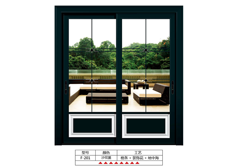 F201 沙纹黑 格条+装饰花+地中海
